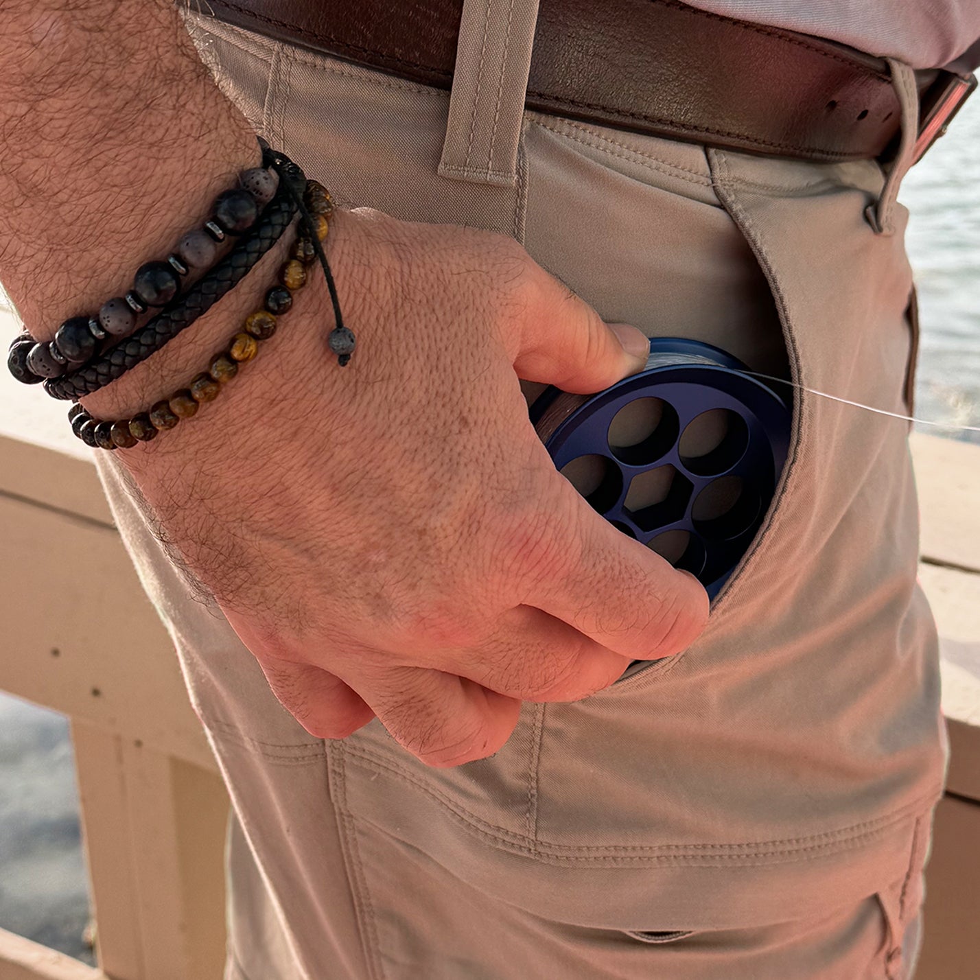 Once the line is the the water, you can either hold the Yoyito in one hand and hold the line with the other (keeping the line tight so you can feel the bites) or you can place the Yoyito in one of your pockets and just hold the line.